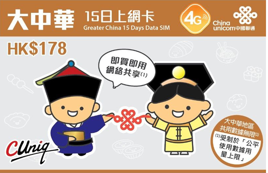 廣東及香港15日上網卡】中國聯通2GB/15天可直接上FB,Line !任何手機型號均可使用。